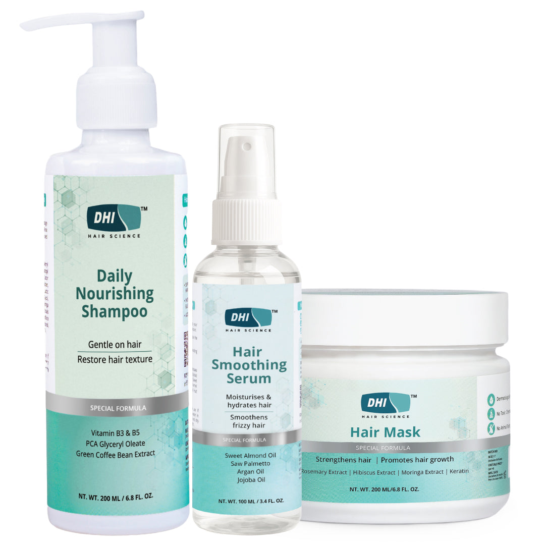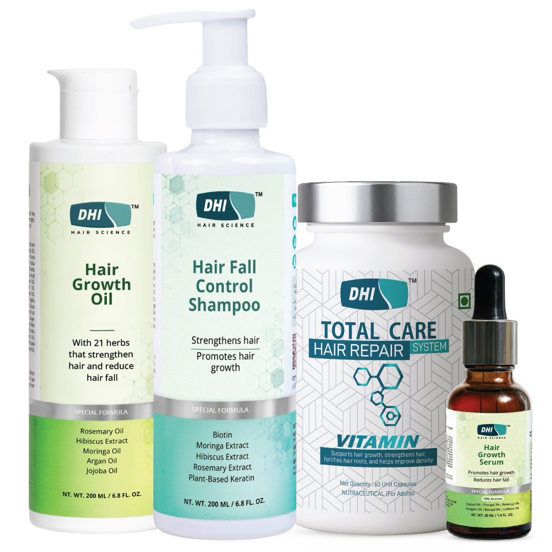 DHI™ Hair Science brings together the goodness of clinical active ingredients like Capixyl, Redensyl, and Procapil on one hand and the best that Mother Nature offers, like rosemary extract, moringa, saw palmetto, and hibiscus, to take care of your hair.