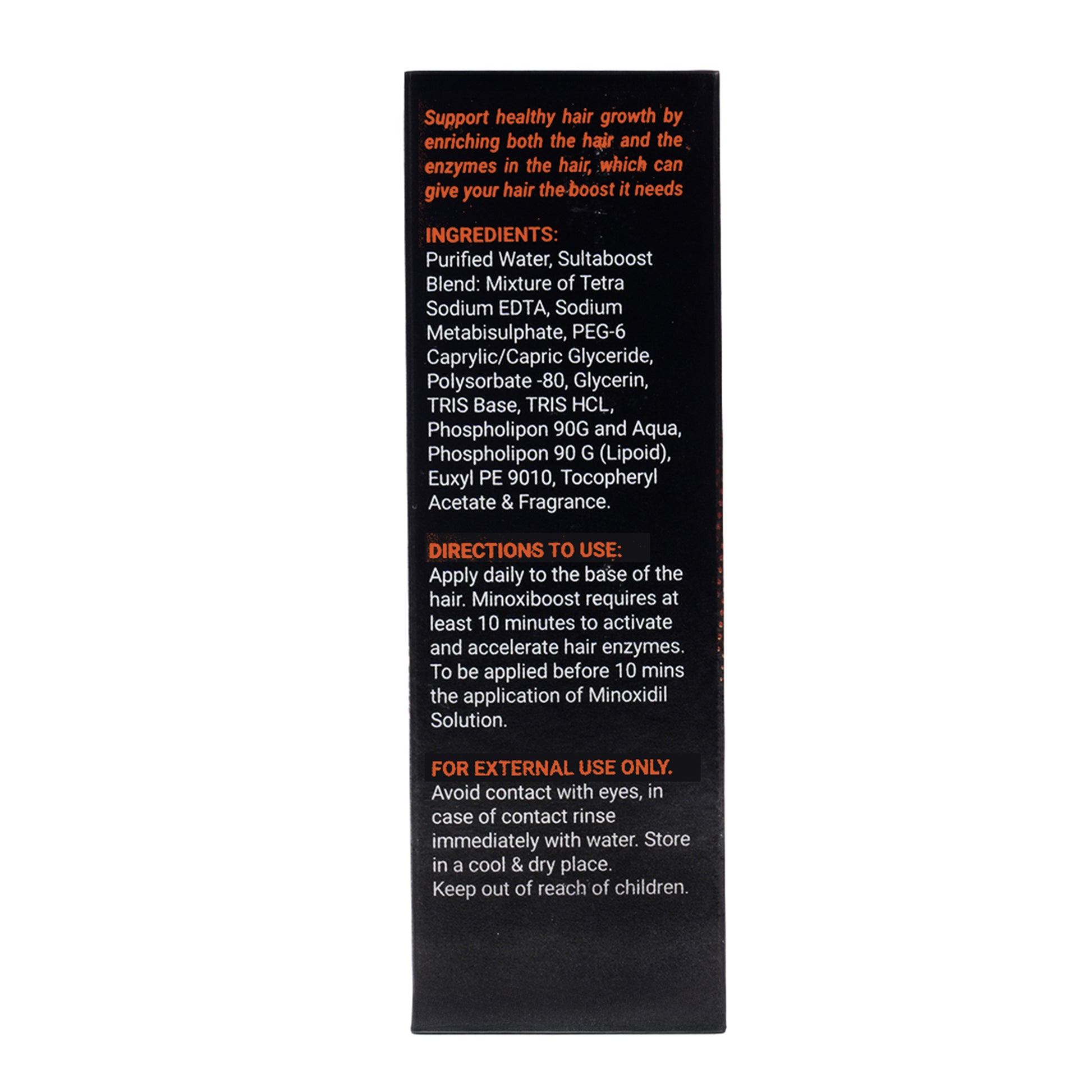Purified Water, Sultaboost Blend: Mixture of Tetra Sodium EDTA, Sodium Metabisulphite, PEG-6 Caprylic/Capric Glyceride, Polysorbate-80, Glycerin, TRIS Base, TRIS HCL, Phospholipon 90G and Aqua, Phospholipon 90 G (Lipoid), Euxyl PE 9010, Tocopheryl Acetate & Fragrance.