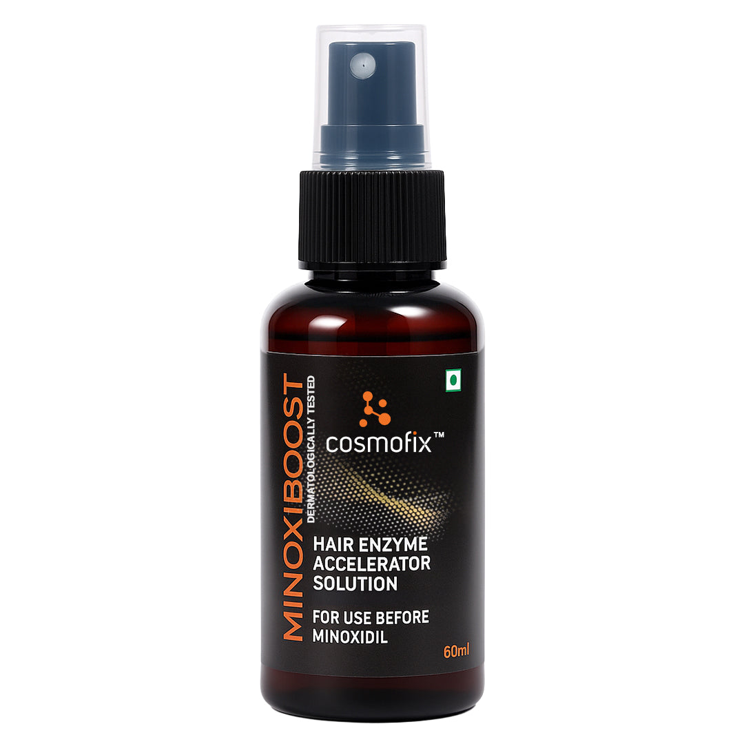 Minoxiboost is for people suffering from patterned hair loss androgenic alopecia or hair thinning who are either slow responders or do not respond to Minoxidil solution. It accelerates follicular sulfotransferase enzyme activity. It will improve the response to Minoxidil in non-responders or slow responders.