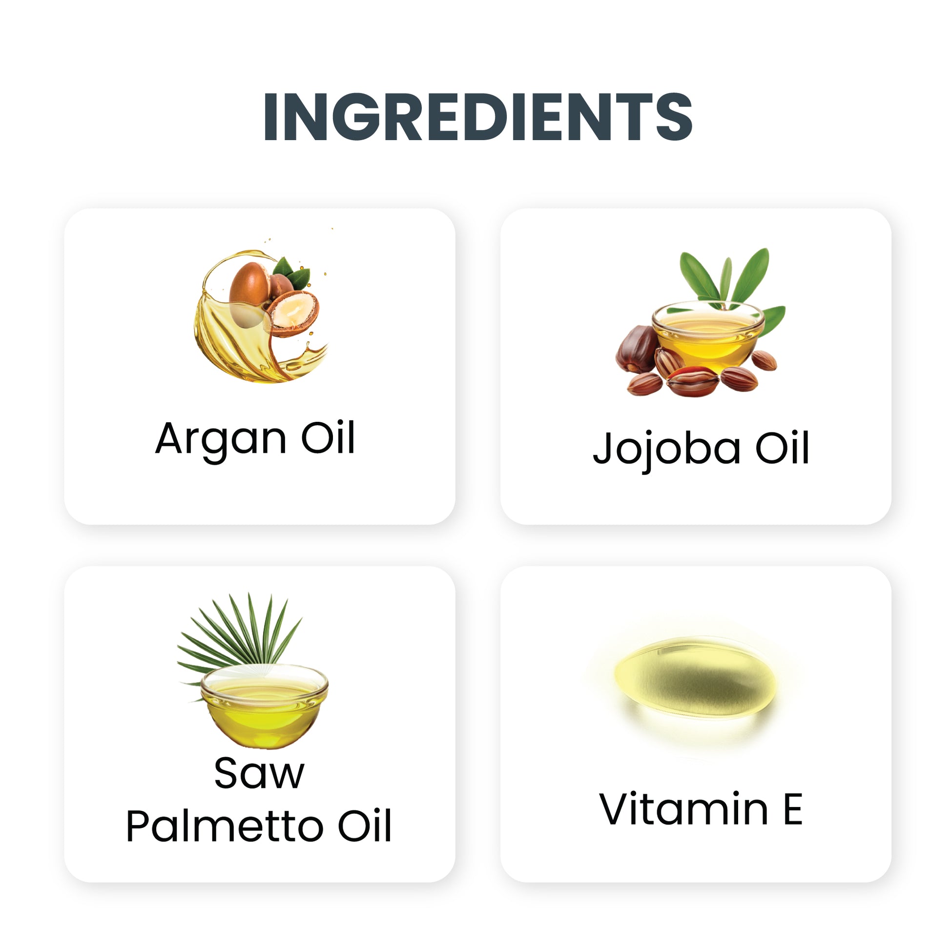 - Saw Palmetto – Helps block DHT, supports reduced hair thinning and hair fall.