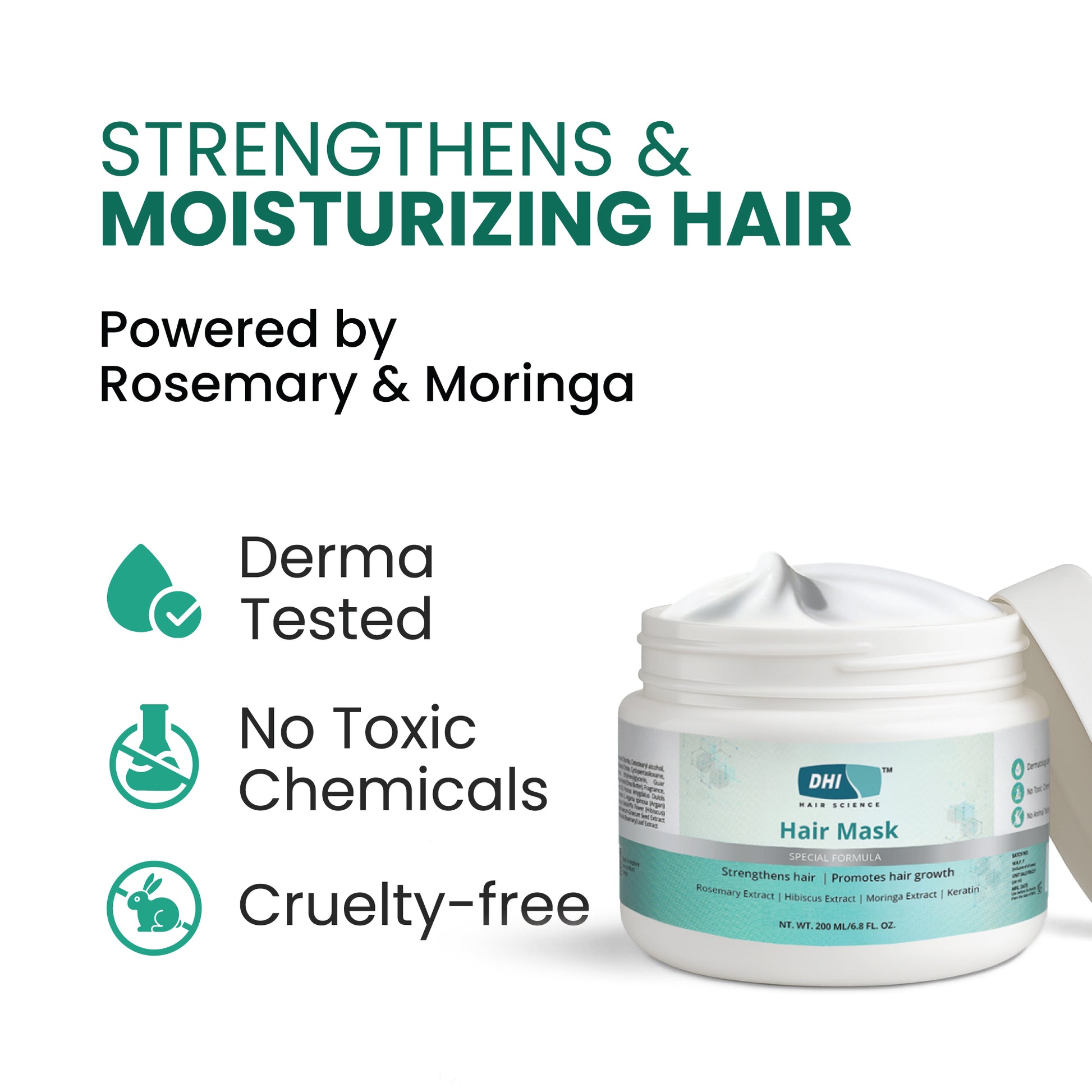 Hair Mask: Enriched with vitamins A, B-Complex, and E, which prevent hair breakage and inhibit 5α-reductase.